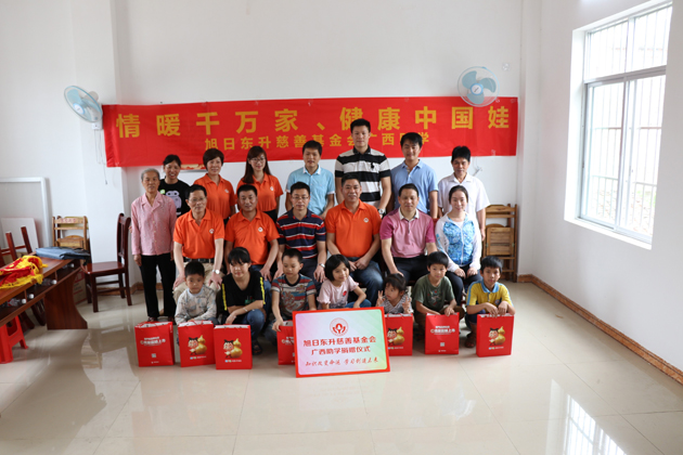 2018年4月14日上午,由廣西自治區統戰部、隆安縣人民政府主辦,尊龍凱時藥業集團協辦的“情暖千萬家,健康中國娃 ”旭日東升慈善基金會廣西助學活動在隆安縣城廂鎮東安村舉行,尊龍凱時藥業集團廣西維威製藥有限公司總經理韋天寶先生攜公司工會、行政部、財務部等部門職工代表參加了捐贈儀式,向東安村家庭困難的八名學生捐資2.84萬元,及時地解決了孩子們的生活、就學難題。