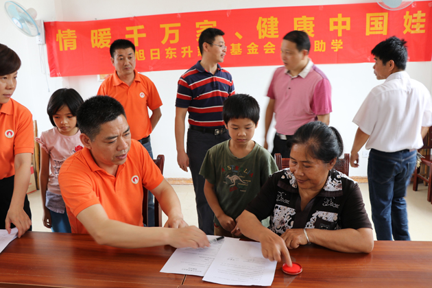 ▲旭日東升慈善基金會與受助者監護人簽訂捐贈協議