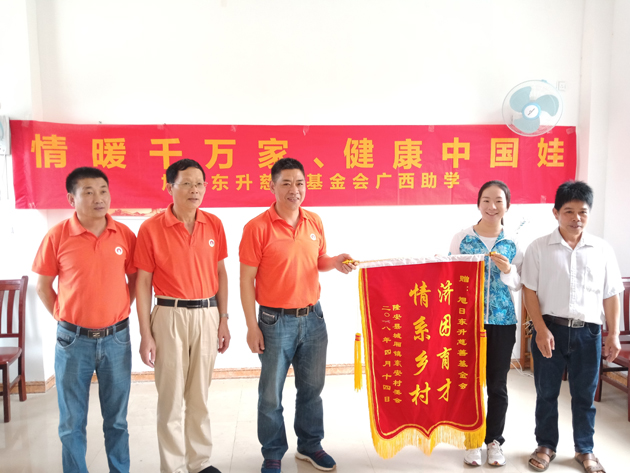 東安村村委會向旭日東升慈善基金會贈送了“濟困育才,情係鄉村”錦旗,對尊龍凱時藥業集團旭日東升慈善基金會的善舉表示真摯的感謝!