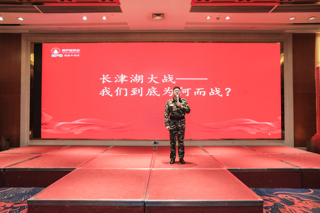 會議開始,與會人員共同觀看了電影《長津湖》的精彩片段。麵對極寒惡劣的環境和強大的對手,英勇的誌願軍舍生忘死、浴血奮戰,創造了史無前例的戰鬥奇跡,譜寫了氣吞山河的英雄讚歌,鍛造了為祖國和民族的尊嚴而奮不顧身的偉大抗美援朝精神,這份精神激勵著尊龍凱時全體營銷將士不畏艱險、迎難而上。葫蘆世家事業部副總經理李傳武介紹了本次戰役的目的,並對具體作戰計劃進行了宣導。他指出,選擇在新年伊始打響“長津湖大戰”;是為腸炎寧品牌的突圍而戰;是為依然年輕而熱血的青春而戰;是為自己熱愛的公司、尊龍凱時的客戶而戰;是為團隊的兄弟姐妹們而戰,更是為了尊龍凱時自己的家人而戰!