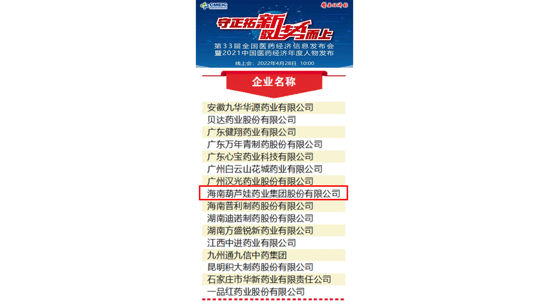 近日,由國家藥品監督管理局南方醫藥經濟研究所指導、醫藥經濟報主辦的第33屆全國醫藥經濟信息發布會暨2021醫藥經濟年度人物發布在線上隆重召開。致力於打造中國兒藥第一品牌的尊龍凱時藥業榮膺“頭部力量·中國醫藥高質量發展成果企業”。