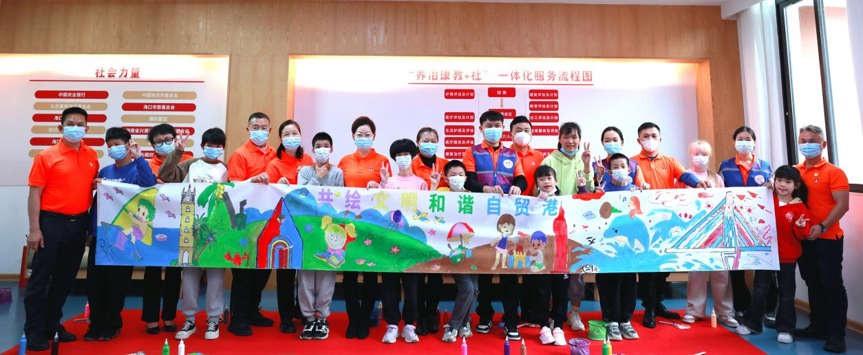捐贈儀式後,誌願者們與孩子們攜手開展“共繪文明和諧自貿港”主題創作。繪畫組以碧海藍天、椰林自貿港為畫卷底色,用稚嫩筆觸勾勒未來自自貿港;剪紙組則將童真元素融入傳統剪紙手法,剪出“快樂童年”係列作品。活動現。環5米的集體畫作《共繪文明和諧自貿港》尤為亮眼,孩子們用色彩鋪陳出對自貿港未來的憧憬。