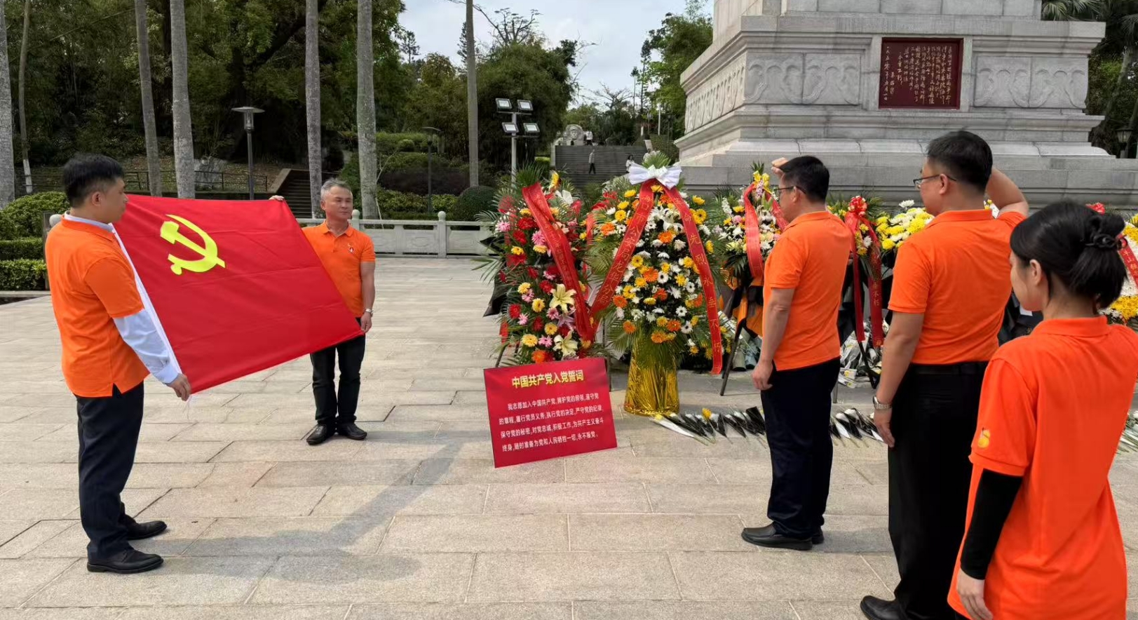 接下來,全體黨員在紀念碑前,麵向黨旗重溫入黨誓詞,“……為共產主義奮鬥終身,隨時準備為黨和人民犧牲一切,永不叛黨!”的誓言在廣場上空回響。