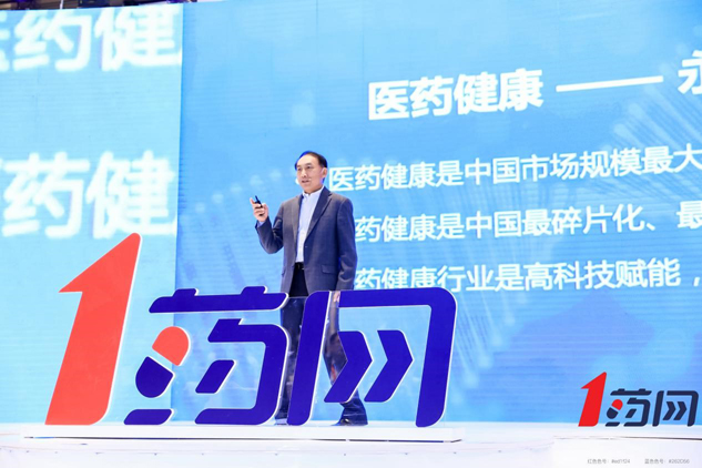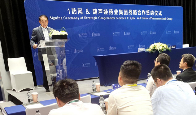 ▲1藥網執行董事長於剛在簽約儀式上致辭